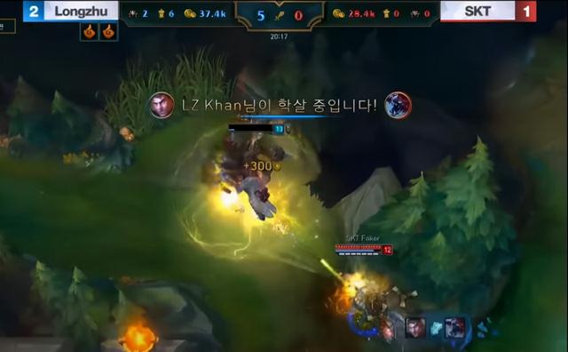 不久前宣布退役的Khan,一度被认为是LCK联赛中最强的杰斯,能够无视版本Meta选出来。在2017年的LCK夏季赛总决赛中,LZ与SKT迎来了冠军争夺战,LZ率先拿到赛点,SKT扳回一局。在第四局比赛中,Khan拿出杰斯来对阵Huni的科加斯。典型的长手打短手对局,LZ还疯狂军训了。