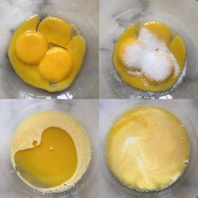 1、将蛋白和蛋黄分离,蛋黄里加入糖和油,搅拌均匀再加入牛奶,搅拌均匀