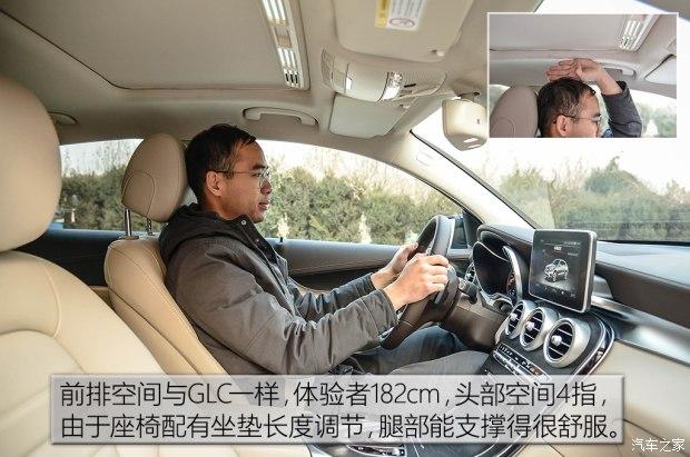 后排的头部空间缩水挺厉害的,182cm的体验者坐在后排,头部与车顶的空间几乎就是一个手指头的距离,与GLC的一拳有着不小差距,对于女生(162cm)来说影响不大。