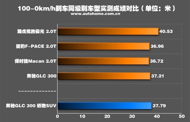 全力刹车时踏板的回馈力度比较轻柔,驾驶员只需要用一定的力气和速度踩下踏板,就能明显感觉刹车辅助系统帮着使了不小的劲儿。最终成绩对于一台SUV来说很出色,当然,对手们也都是狠角色。