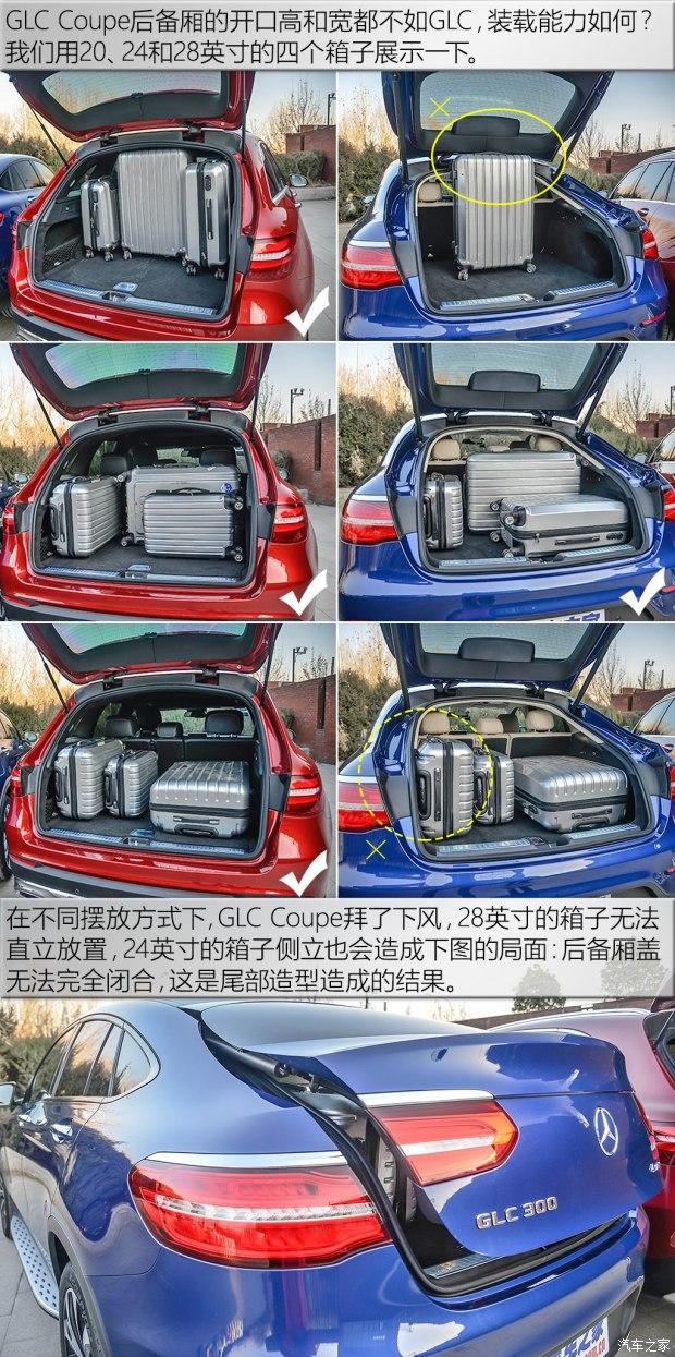 高度是弊病,GLC Coupe的溜背造型让它的后备厢的最大和最小高度都远逊于GLC,尽管进深略长,但摆放箱子时,还是不可避免的败给了GLC。