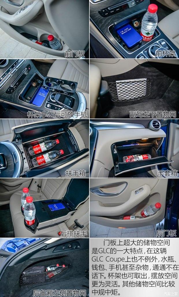 GLC Coupe的储物空间与GLC一样,门板空间超大,杯架还可以拿出,放个手机什么的杂物也非常方便,车内多置物网,总的来说表现不错,属同级别里的中上水平。