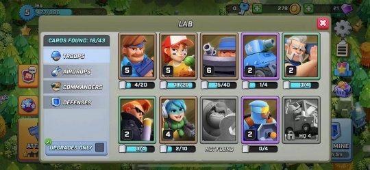 兵种养成方式与《皇室战争》一样,收集到一定数量相同兵种后,通过花费金币升级。