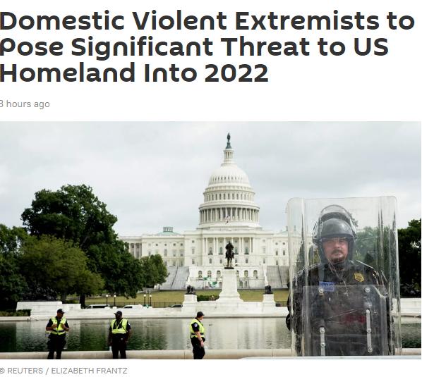 “从2021年剩下的时间再到2022年,出于种族或族裔动机的暴力极端分子和反政府暴力极端分子将持续对美国本土构成威胁。”该报告写道。