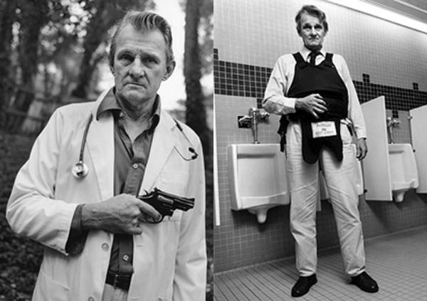 剩下那些坚持提供堕胎服务的诊所则不得不配备全副武装的警卫,不少医生甚至要穿着防弹背心、佩戴手枪去上班。约翰 · 布里顿就是他们中的一员。
