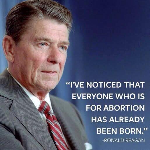 里根嘲讽支持堕胎权的人:“我发现每个现在支持堕胎的人当年都没被堕掉。”