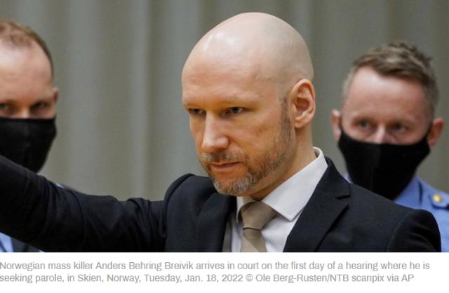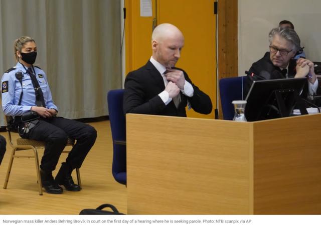 星期二,布雷维克在一名挪威法官面前参加假释听证会,该听证会将决定他是否会被提前释放。