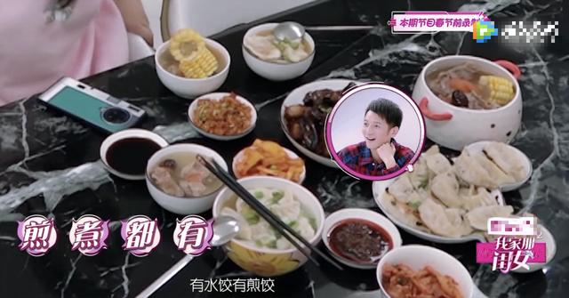 欣赏下,林允的丰盛大餐,饺子、煎饺、玉米龙骨汤、红烧肉,煎煮都有