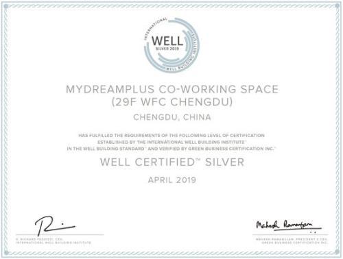 梦想加空间成都领地环金29层获得WELL银级认证
