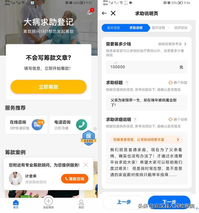 法治网研究院中断填写求助信息的几分钟后,接到了自称是“水滴筹”工作人员的电话,询问是否需要帮助,在回复属误点无需帮助后,其继续追问身边是否有其他亲友身患高血压、脑梗、糖尿病等疾病需要救助,可联系帮助筹款。温州商报曾报道称,筹款顾问帮助一个项目筹集20万可提成2000元。