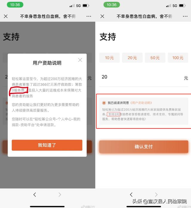 近日,据红星新闻报道,“轻松筹”等网络大病筹款平台开始向用户收取“手续费”。多名网民爆料称,平台在用户捐款时会默认勾选“用户资助说明”这一额外付费的选项,稍不留意就会被收取3元“手续费”。