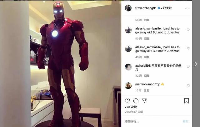 第一张配图的钢铁侠就是张康阳多次在ins上晒过的“挚爱”▽