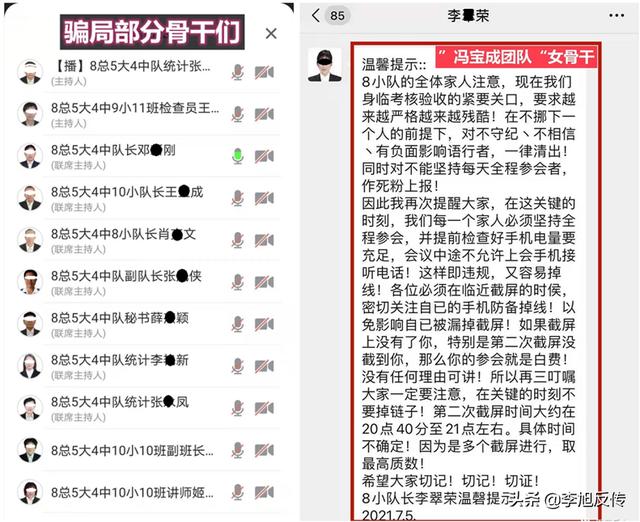 据李旭反传销团队了解,这个学习道德经的诈骗团伙就是“民族资产解冻”骗局特质卡冯宝成团队,一直以“国家快发钱了”、“快下雨了”的谎言欺骗一个个参与的中老年人,就是杀猪盘洗脑“养猪”,然后“杀猪”的套路,虽然表面不收钱,一个是通过报单收集参与者的信息,一个是慢慢诱导大家投资别的互联网项目。
