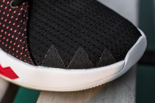 鞋头部位采用了热熔胶加固保护,弥补了鞋面较软支撑性不足的缺点,鲨鱼齿的形状设计也增添了一种犀利的气息。