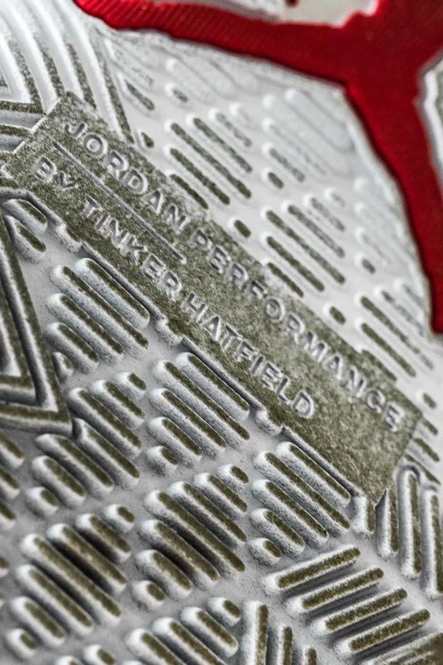 以标语的形式呈现 “JORDAN PERFORMANCE BY TINKER HATFIELD” 字样,高调着展示着由 Tinker Hatfield 本人设计的 Jordan 性能篮球鞋的身份。