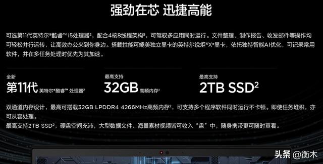 今年酷睿版迭代到11代英特尔处理器,这其中终于将以前的残弱的亮机核显升级为性能更加强大的锐炬x核显了,好处自然是图形计算处理能力得到加强,这类小巧的轻薄本也可以应付一下轻度的图形处理工作。