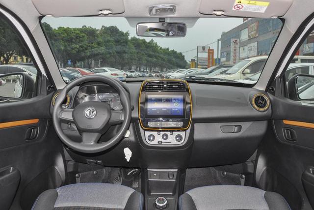 内饰整体的设计也是比较简单的,加入了橙色元素进行点缀,稍显了年轻活力,中控台整体层次分明,材质上均为硬塑料,这个价格并不能奢求太多,它两侧的圆形出风口设计也是很有意思的,采用很经典的翻版调节风向,并且内侧加入了护网,以防东西的掉落,很细节。三辐结构的方向盘同样为塑料材质,手感一般,同时也没有其它任何功能。