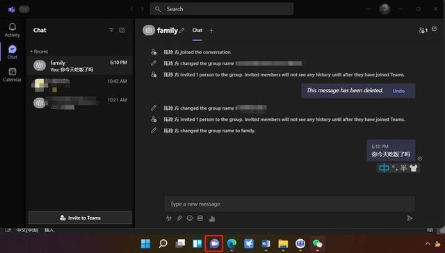 A 君今天早上打开自己已经装好了 Windows 11 的笔记本时发现,在发布会上说的内置的「Microsoft team」(见下图红圈)已经出现在电脑桌面的底部了。