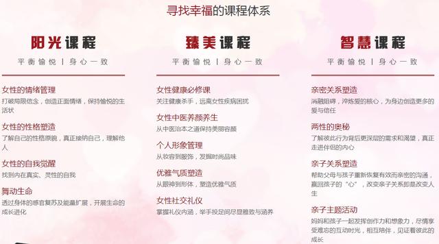 3大课程改变,由内而外做自信优雅女人:● 阳光课程——【心】平和愉悦