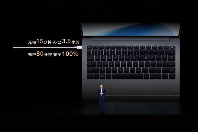 此外,这款机型还是全球首款配备 75Wh 电池的 14 英寸轻薄本,支持 100W 快充,而且支持关机反向充电,充电 15 分钟可办公使用 3.5 小时,80 分钟就可充满电。此外,这款电脑还是行业首款标配 100W 氮化镓充电器的机型。
