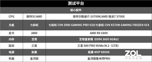 在参数上,两者整体差不多,英特尔酷睿i7-10700K的优势在于高频和自带核显,而AMD锐龙7 3700X的优势在于对内存频率支持更高,支持PCIe 4.0以及功耗更低。同时虽然十代酷睿目前已经大幅降价,但在性价比方面看来还是AMD锐龙7 3700X更胜一筹,与英特尔酷睿i7-10700K京东盒装差价相差500元。那么这500元会影响它们之间的性能么?接下来咱们实际对比测试一下,首先介绍一下测试平台。