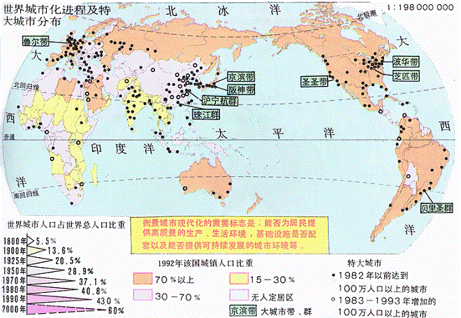 如果,社会经济发展水平与城市化水平不相适应,就会出现不合理的现象。我们把城市化水平低于社会经济发展水平的现象,称为“滞后城市化”;把城市化水平高于社会经济发展水平的现象,称为“虚假城市化”,这些现象多发生在发展中国家。其中,虚假城市化现象多发生在拉丁美洲地区,如巴西、阿根廷等国。