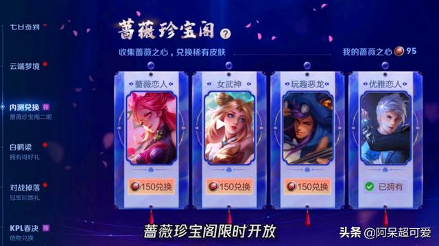 除此之外,还有珍宝阁活动也会在春节开启,这也是毫无悬念的活动,手上有120个蔷薇之心的玩家,应该可以兑换皮肤了。