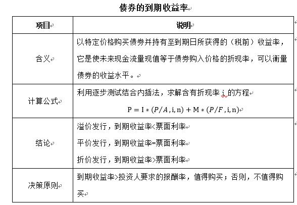 提示:债券的到期收益率的计算方法与内涵报酬率的方法相同,因此债券的到期收益率可以理解为内涵报酬率。