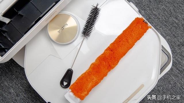 水箱还配备了多个橙红色的提手,方便日常加水和清理时拿取。拿出污水箱盖后,内部设计了浮漂,当内部水位超过水线时,就会在App上提醒清理污水箱。智米洗地机器人不仅可以洗地,也保留了传统扫地机器人的干扫模式,只需将洗地专用水箱盖更换成干扫专用水箱盖,即可自动切换为干扫模式。