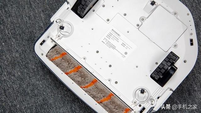 透明的滚刷罩外侧贴了一圈防撞胶条,机构与机器人连接部分设置了前沿保险杠,碰撞时可以减轻撞击力度,防止碰坏家具。透明罩侧面设置了滚刷罩卡扣,如动图所示,扣动滚刷两侧卡扣就能取出滚刷。智米洗地机器人开拓者A1配备两个238mm超长滚刷,软硬毛混合滚刷和纯软毛滚刷满足木地板和瓷砖等不同地面的需求。