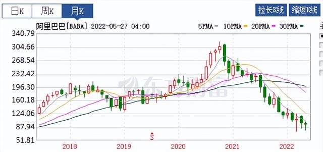 2021年,阿里巴巴美股的市值也缩水了一半,如今依然在低位徘徊!