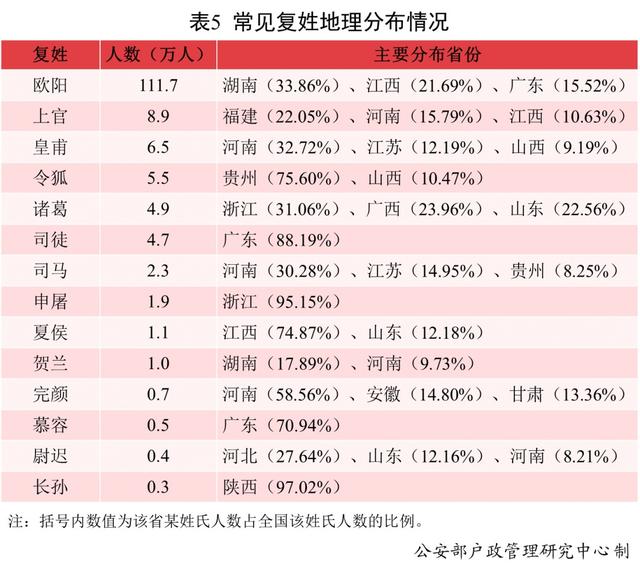 常见复姓“聚居”的特点非常突出,复姓人口在个别省份的分布较为集中。