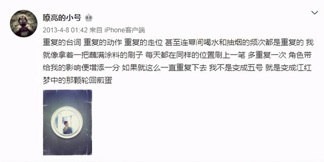 2013年,31岁的他索性推掉所有影视剧拍摄,将全部精力放在话剧。