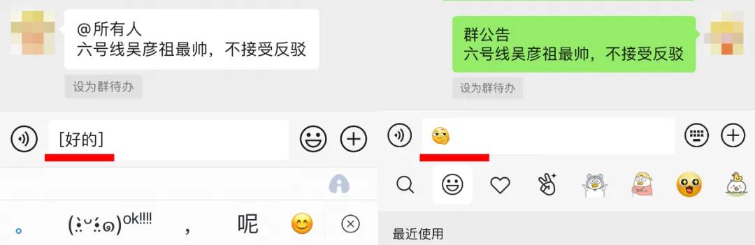 而在更新之后,输入表情的时候就能够像emoji一样,直观地看到这个表情。