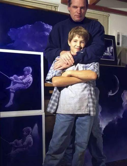 起初,斯皮尔伯格设想的梦工厂Logo是让一个成年男子坐在月亮上垂钓,并用电脑合成的手段将这幅画面展现出来。但是他的老搭档、工业光魔的视效总监丹尼斯·穆伦却觉得手绘标识可能是更为理想的选择。于是,穆伦便请来了他的画家朋友罗伯特·亨特帮忙。有趣的是,亨特在为梦工厂绘制Logo时,也迸发了新的想法,所以他一口气创作出了两个版本,一版遵循了梦工厂的要求,而另一版则将垂钓的男人换成了小男孩儿。至于Logo提交的结果,大家看到的梦工厂片头已经给出答案啦,斯皮尔伯格显然对那个男孩情有独钟。至于那个坐在弯月上被万人瞩目的幸运儿,他就是亨特的儿子威廉,活脱脱的近水楼台先得月嘛。
