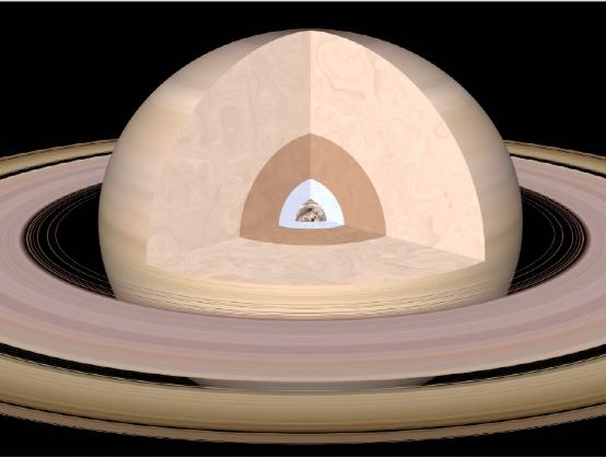45亿年前,太阳系其他部分开始演化,引力将气体和灰尘涡动形成了这个气态巨行星。大约40亿年前,土星在太阳系外层的位置变得稳定,成为了距离太阳的第六近的行星。与木星一样,土星也主要是由氢和氦构成的,同样的两种元素也是太阳的组成物。土星中心为密实的金属芯,可能包括铁或镍,包裹在外面的是坚硬的金属和其他因被加压加热而变得稳固的化合物。在液体氢层内部,化合物周围还有液体游离态的氢——它的核心部分与木星相似,但体积更小。