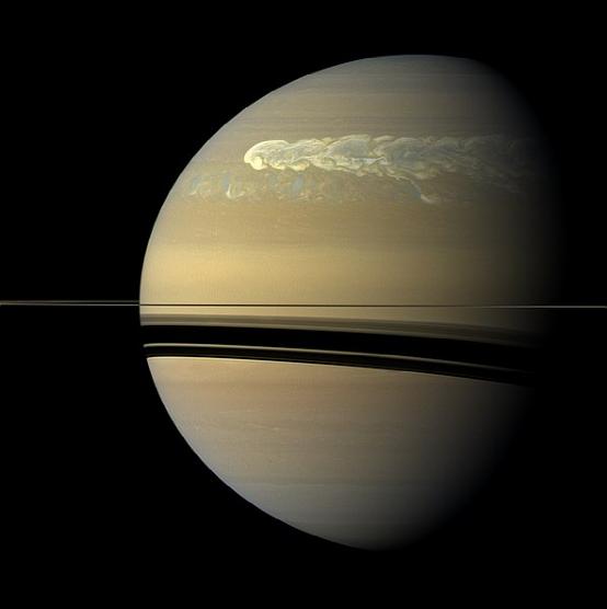 由卡西尼号所拍摄到向日的土星,为接近真实色彩的影像