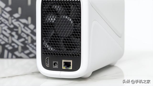 后侧是主要接口和大面积的风扇网罩,网罩内是一个8025风扇,转速会根据温度和负载智能调节,日常使用中30公分以外基本没有明显的风噪。