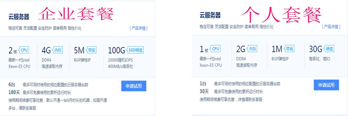 1.阿里云,目前阿里云最新免费体验活动中,企业套餐与个人套餐分别提供了最多6个月的体验服务