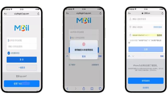 之后进行面容或指纹的确认即可,如果想要新注册一个网站的账号,还会自动生成强密码,辅助注册。