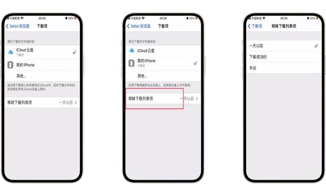 进入Safari的设置里,找到【下载项】,你可以更改默认的下载位置,比如你可以将Safari下载的文件保存在iCloud云盘
