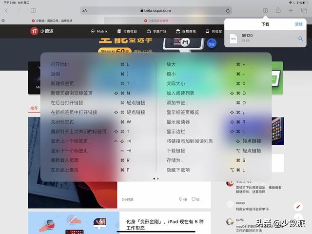 就像文件 App 一样,Safari 中的链接也可以通过长按链接进行预览和各类快捷操作。外接键盘用户更是可以通过多达 30 个键盘快捷键来提升操作效率。