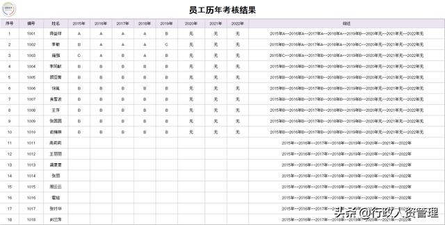 3、员工历年考核结果记录