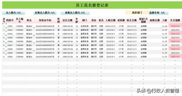 2、录入基础信息生成员工花名册表,员工生日自动提醒