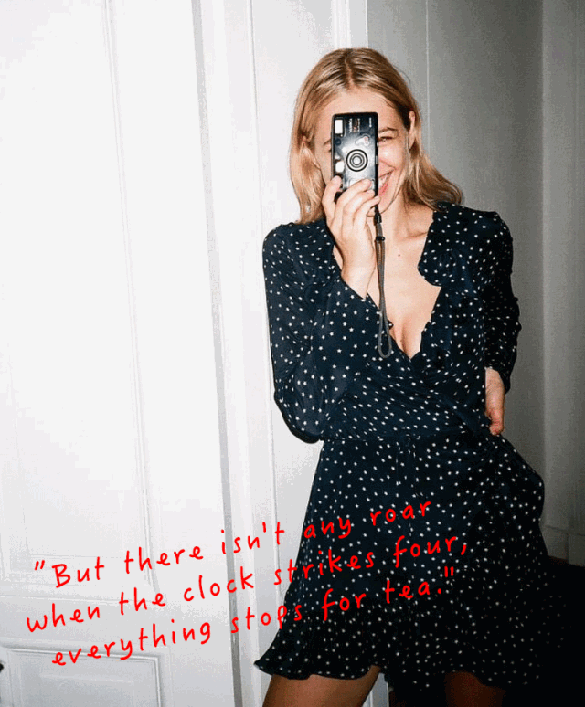 茶歇裙基本都是V领收腰的设计,这种版型显瘦显高,对大部分身材都很友好。