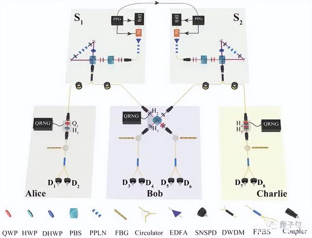 在实验计划中,研究人员将从两个不同的来源发送成对的纠缠粒子给三个不同的人,根据传统的物理术语命名为 Alice、Bob 和 Charlie。Alice 接收到一个粒子,并且可以使用她选择的各种设置对其进行测量,Charlie 也这样做。Bob 接收到两个粒子并执行一种特殊类型的测量来纠缠 Alice 和 Charlie 接收到的粒子。