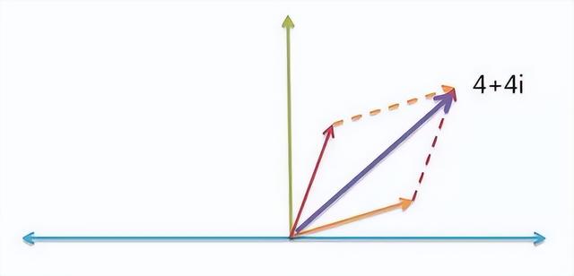 根据"平行四边形法则",你马上得到,合成力就是 ( 3 + i ) + ( 1 + 3i ) = ( 4 + 4i )。
