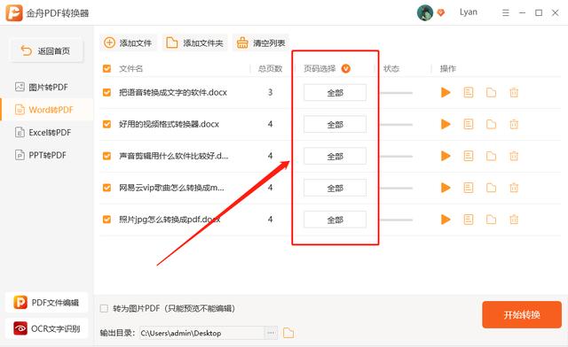 第三步、转换时,可以自定义选择页码进行转换,点击“全部”;