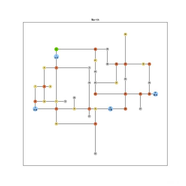 绿色0为起点,蓝色点为终点,比如北京,去北京是固定地只经过两个点、一条线,每个点最多拿一个特产,所以可以回顾一下自己的第一次旅行,最多拿了俩特产对吧。