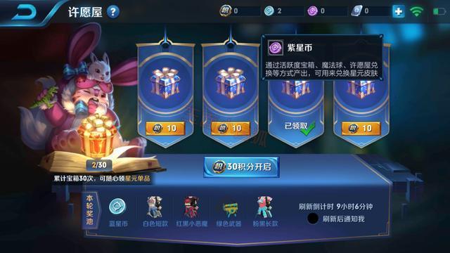 先给大家说一下如何免费获取这个金色仲夏夜。金色仲夏夜标价300紫星币。每天只需实战2~3场就可以达到90活跃度,在活跃宝箱中每天至多3个至少1个紫星币。许愿池许愿30次也可以获得紫星币,每天免费许愿两次,也就是15天可以获得2个。